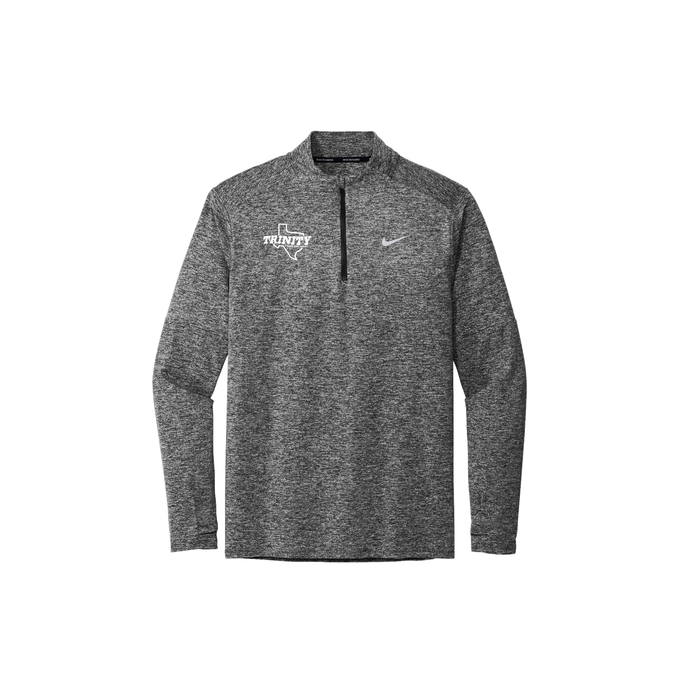 This best-seller delivers all-utility warmth and comfort from the sweat-wicking fabric down to the thumbholes. This comes in the color black heather and has a white Trinity Track and Field logo on the right chest.